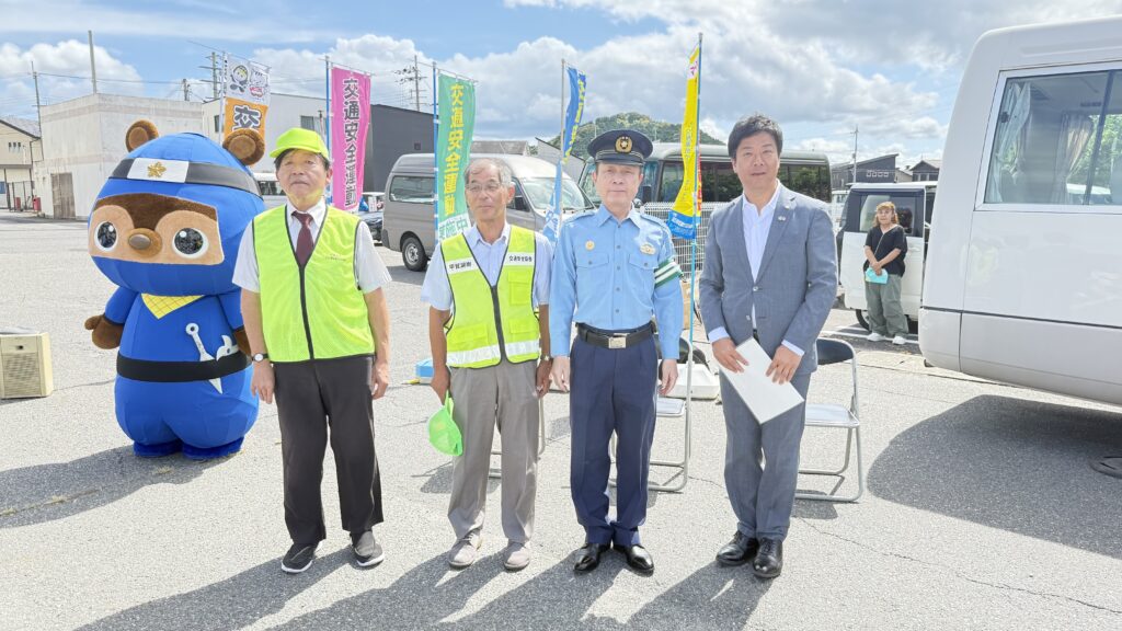 日時: 9月26日(金) 10:30~11:00 場所: 城南交差点 住所: 滋賀県甲賀市水口町水口5992 城南交差点付近にて、甲賀湖南安全運転管理者協会役員 計15名に啓発活動を実施し…