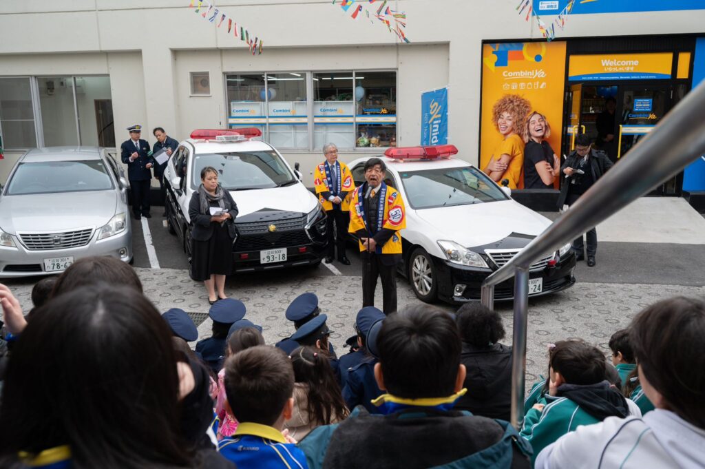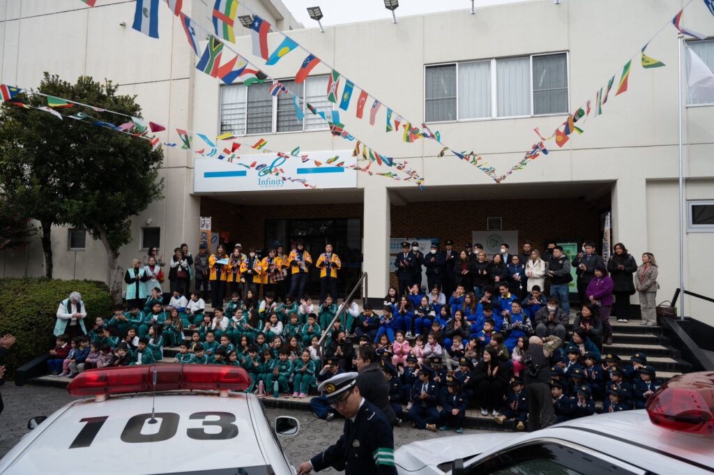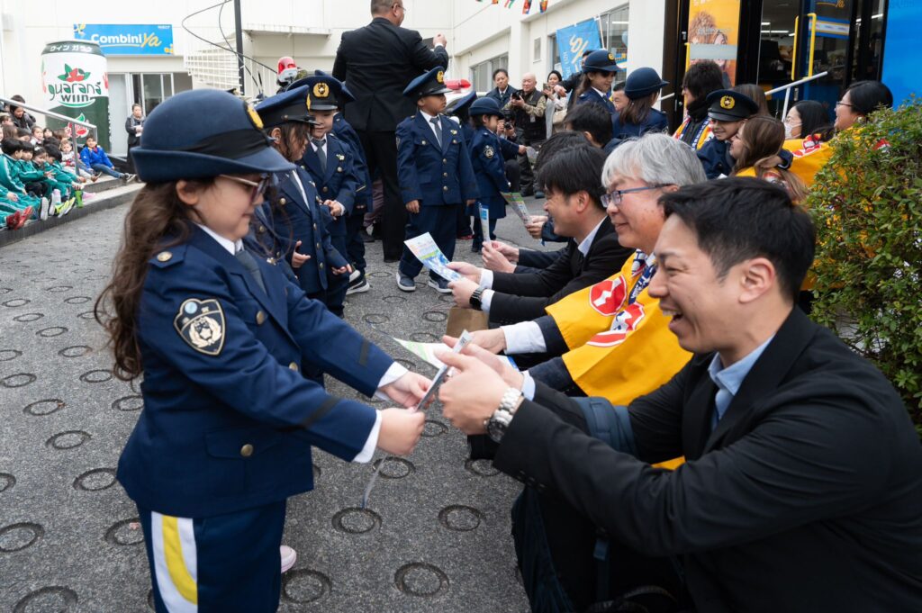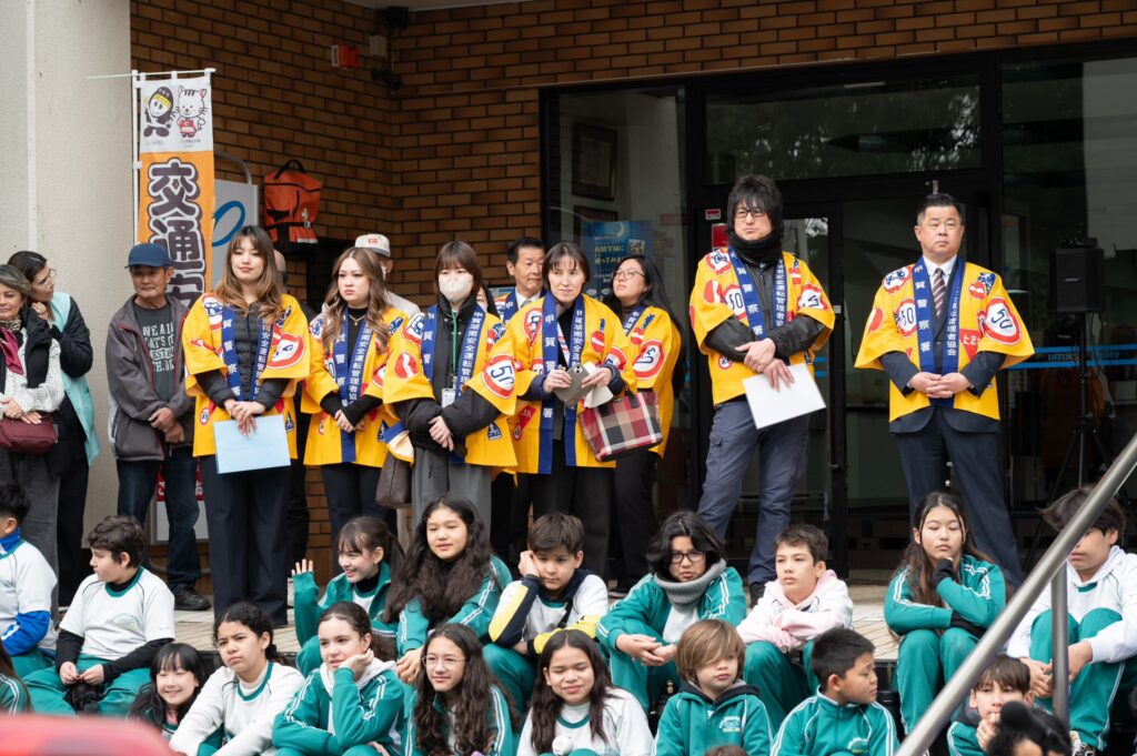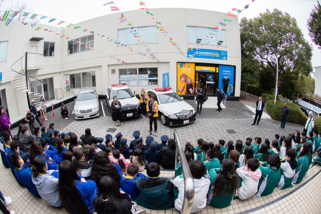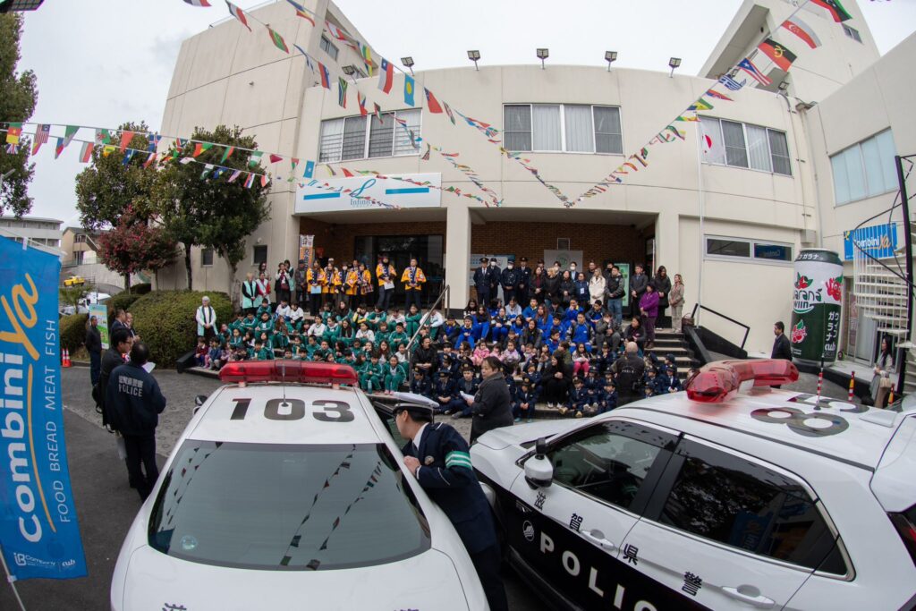 3月13日(金)に甲賀湖南安全運転管理者協会事務局のINFINNITY㈱にて、子供110番のイベントが開催されました。サントスデュモン学園、ラチーノ学園、サンタナ学園、安管関係者など約200名の参加を頂き、警察官のご指導のもと交通安全教室や、自転車ルール改正に関する講習会等が盛大に行われました。
