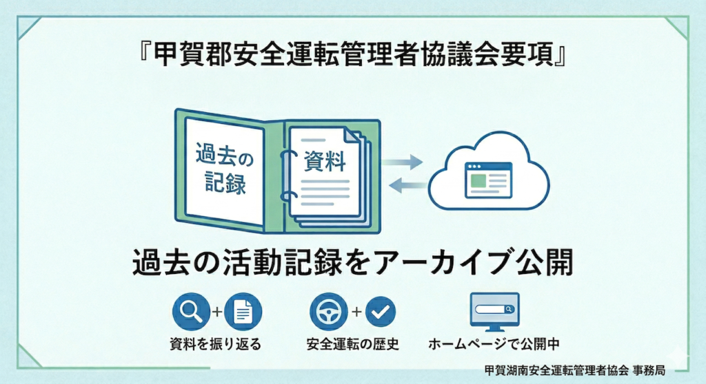 地域の交通安全の要として歩んでまいりました当協議会の活動をより多くの方に知っていただくため、この度、過去の「安全運転管理者協議会要項」および活動記録をホームページへ公開いたしました。 これまでの取り組みを振り返るとともに…