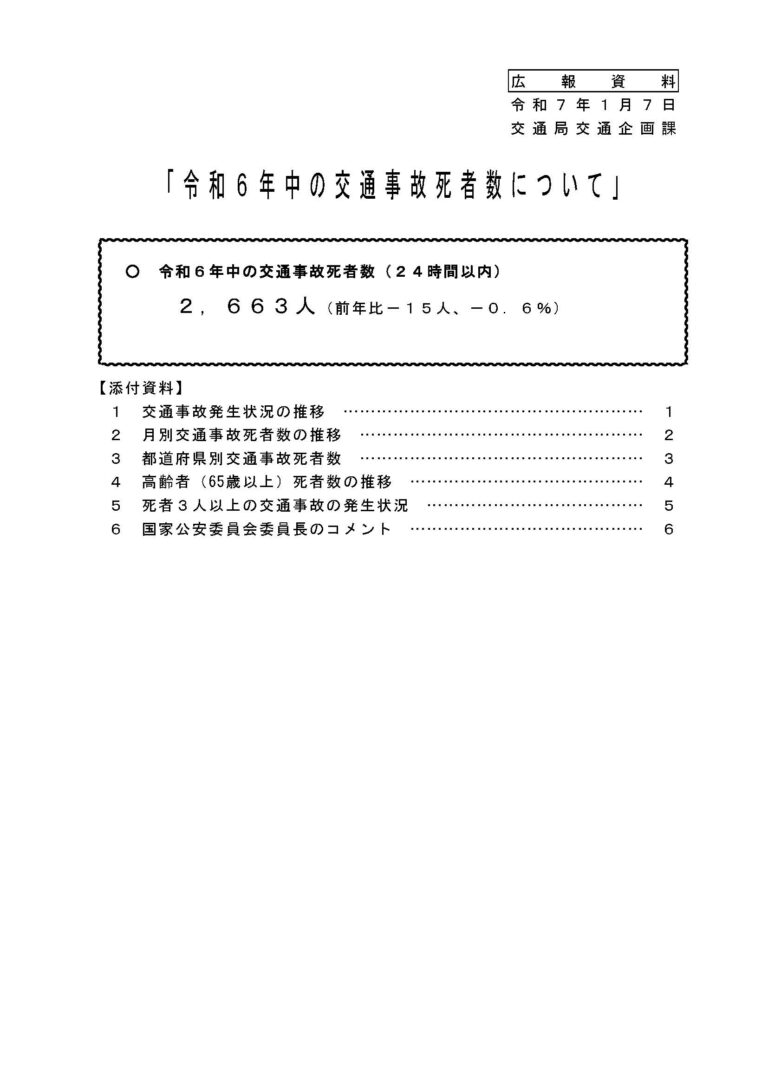 令和6年中の交通事故 交通事故発生状況についてのお知らせ